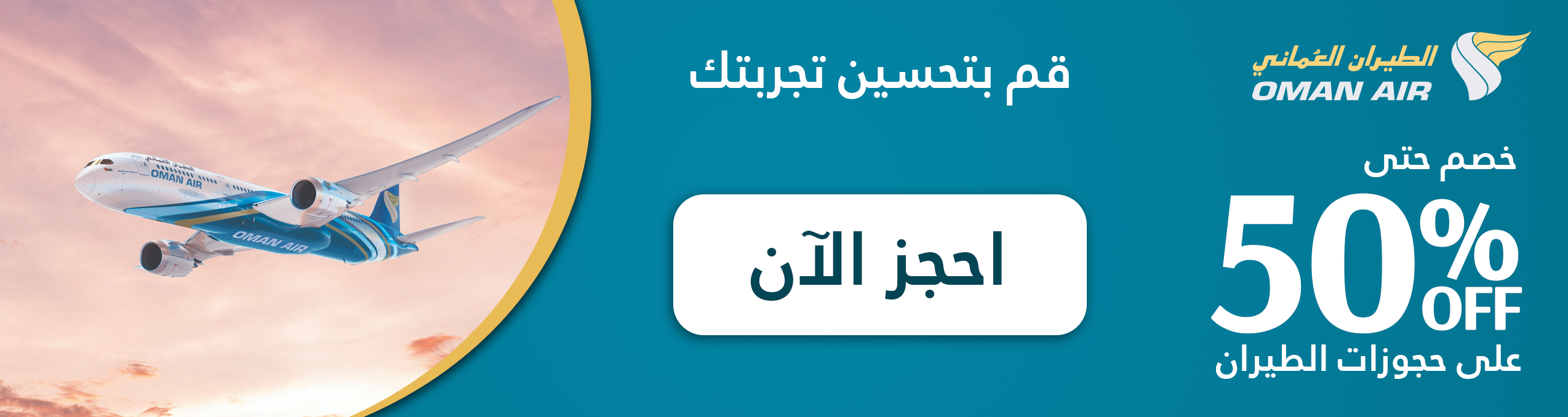 عرض اير برسوفّر حتى 50% على تذكرة الطيران العماني للرحلات المتعددةاستمتع برحلة فاخرة مع الطيران العماني. استفد من توفير كبير على رحلاتك مع عرض اير برس إذا كنت مسافرًا متكررًا. احجز الآن واستفد من عرض اير برس لضمان تجربة رائعة.
