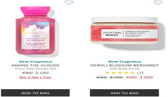 Show Details70% Off PerfumesBath & Body Works Cashback Offer: Save Up to 70% + Extra 5% Off on PerfumesPurchase the exotic and premium quality of perfumes available in Bath & Body Works at reasonable rates in Kuwait. Browse their vast range and select your desired brands like Dream Bright, Pure Wonder, Butterfly, Noir and much more, and avail discounts on your order along with cash rewards by applying the Bath & Body Works promo code at checkout.
