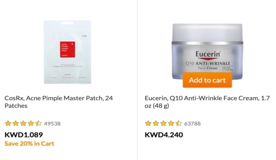 Show DetailsNew Customer CodeNew Customer Exclusive: Flat 20% Off on First OrderCheck out iHerb Kuwait store for a wide range of supplements such as health, beauty, and bath shower products. Avail awesome discount deals on your first order. Go to the iHerb store, and use your voucher code at the checkout to take advantage of discounts and cashback.