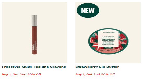 50% Off CodeSave Up to 50% + Extra 15% Off StorewideThe Body Shop is a famous and well-known retailer of cosmetics and personal care items in the KSA. Shop your preferred products, including scents, face moisturizers, and body care. To receive a discount and cashback on your purchase, visit The Body Shop, add products to your cart, and then enter the coupon code.